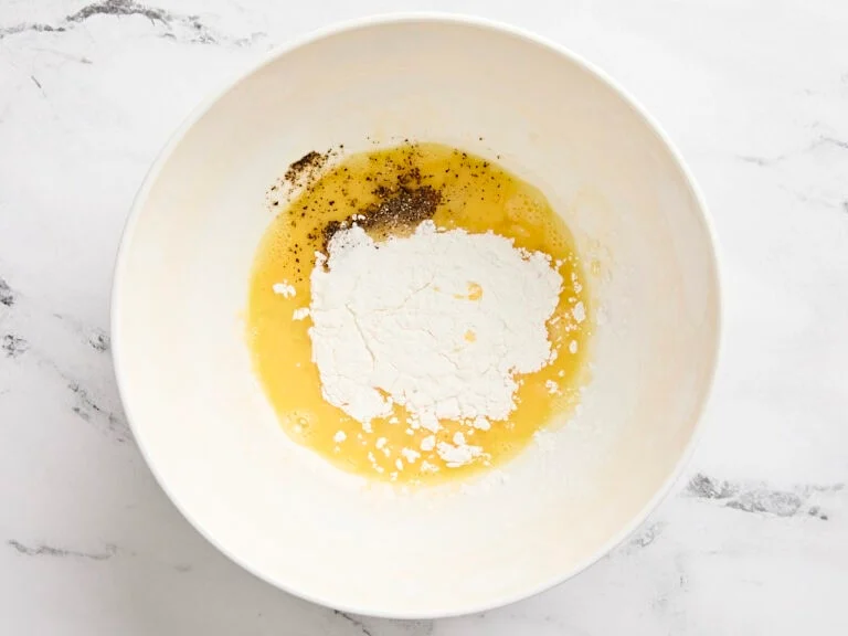 3. Place flour and cornstarch in a shallow dish or pie plate. Add a generous pinch of salt. Stir.