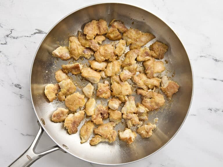 8. Toss chicken with orange sauce. You may reserve some of the sauce to place on rice. Serve it with a sprinkling of green onion and orange zest, if so desired.